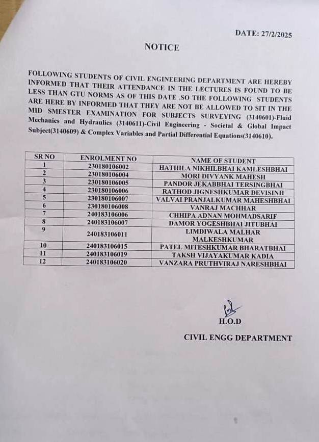 LESS ATTENDANCE IN LECTURES SEMESTER 4