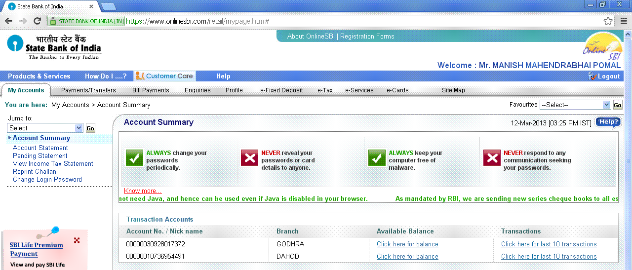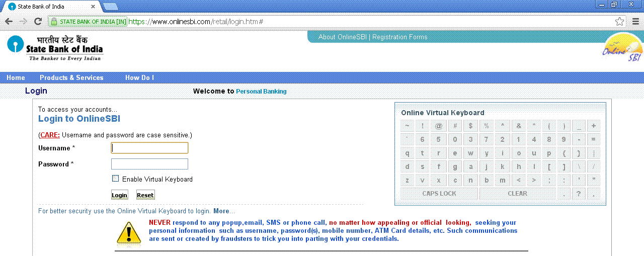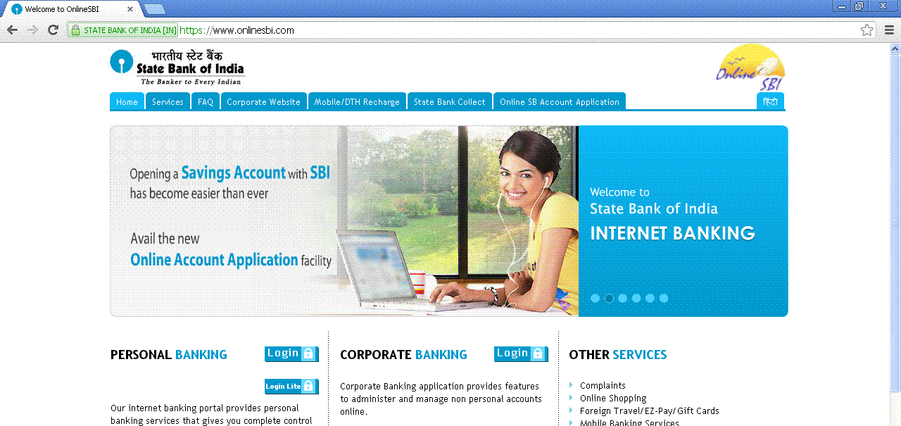 1. Go to https://onlinesbi.com and select personal banking option. |
